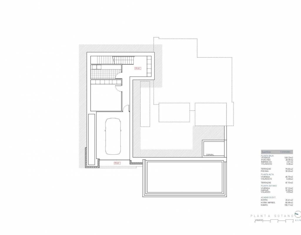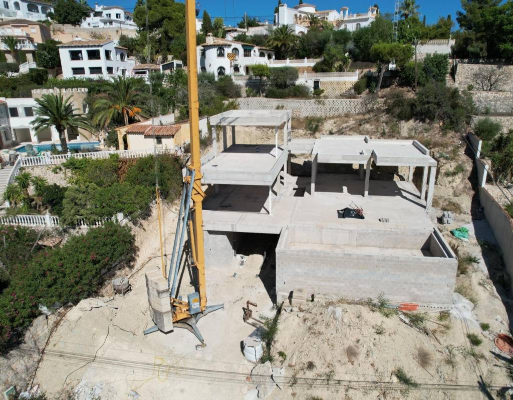 San Jaime is one of the most sought after residential zones in Benissa Costa, known for its elegant villas, green surroundings and proximity to golf courses, beaches and charming coastal towns. The villa sits on a generous 1021 m2 plot with a total built area of 351 m2 and is currently under construction with the structure completed.