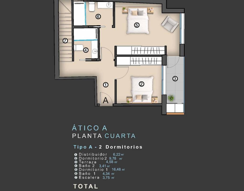 The development consists of 10 contemporary apartments distributed over ground floor plus four upper levels. Buyers can choose between 1, 2 or 3 bedroom layouts, including two exclusive duplex penthouses with private terrace, solarium and private swimming pool.