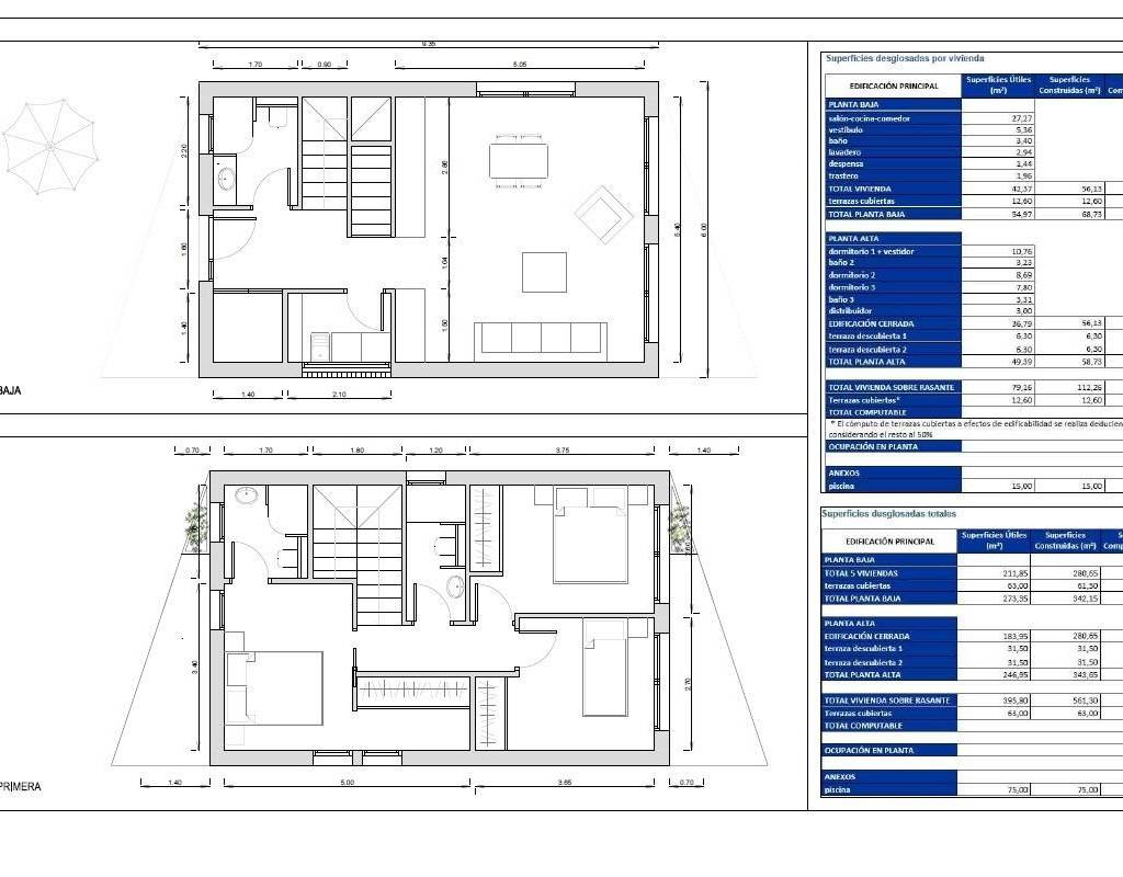 High quality finishes and modern installations ensure maximum comfort and energy efficiency. Features include aerothermal hot water systems, split air conditioning units with individual control in each room, and designer interior and exterior lighting. The kitchen comes fully furnished and equipped with ceramic hob, extractor hood and oven.
